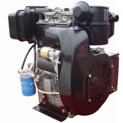 Качественный дизельный двигатель с воздушным охлаждением 12 л.с. Воздушный фильтр этого мотора в масляной ванне. Такая система очистки воздуха эффективна в работе, где слишком пыльная среда. Благодаря такой особенности – это двигатель предпочитают устанавливать на мотоблоки и минитрактора.0