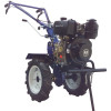 Дизельный мотоблок мощностью 9.5 л.с. отличителен наличием блокиратором дифференциала. Благодаря этой важной функции, оператор не прикладывает особых усилий, поворачивая машину в нужном направление, легко разворачивается на одном месте. Следующий плюс - это КПП 6-скоростей. Пониженные и повышенные скорости необходимы для точного подбора скорости движения. Данная модель отлично используется как мотоблок для посадки картофеля и других культур. Улучшенные ручки управления, бросаются в глаза, наличием пенала для инструментов. Также стоит отметить большую длину, что удобно для работы с роторной косой. ВОМ, имеет шлицевое крепление. Включается рычагом на КП. Задействовав вал отбора мощности, вы сможете работать активной фрезой и другим навесным оборудованием.0