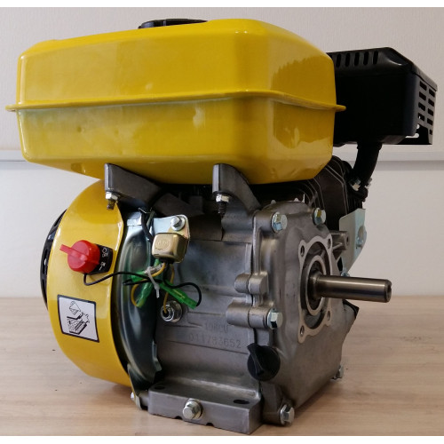 Вал имеет диаметр 19.05мм. Длина 58.5мм. Направление вращения против часовой стрелки. Крепление выходящего коленвала, под шпонку. Универсальное соединение позволяет установить шкив на 1, 2, или 3 ремня. Также вы сможете купить центробежное сцепление. С такими техническими данными, двигатель с вариатором желанное приобретение для деревообрабатывающих станков, щепорезов, дровоколов, пилорам и т.д.