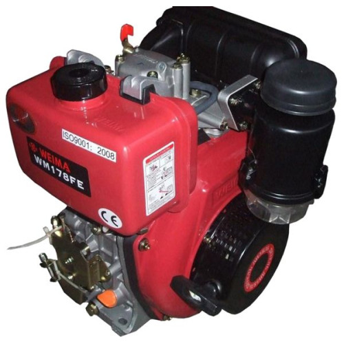 Дизельный двигатель Weima WM178FE, представляет собой 4х-тактный 1-цилиндровый мотор, с воздушной принудительной системой охлаждения. Современная система очистки воздуха, предполагает масляную ванну. Благодаря тому что, воздушный фильтр имеет масляную емкость, которая и задерживает в себе, инородные частицы, с большей эффективностью чем привычный нам фильтр. Двигатель способен работать в пыльной среде, без вреда для себя. Уход за воздушным фильтром, такого класса, довольно простой. Снимаете фильтр, промываете поролон, в мыльной воде, проверяете уровень масла в ванночке. Если масло отсутствует, или слишком загрязнено, следует сменить смазку, наливаете масло по уровню и собираете воздушный фильтр. Выполняя такие простые требования, мотор будет находится в первоклассном состояние, долгие годы.