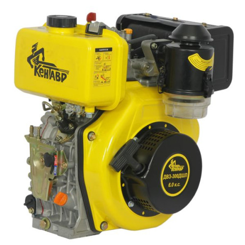 Дизельный двигатель Кентавр ДВЗ-300ДШЛ 4х-тактный 1-цилиндровый мотор общего назначения. Довольно мощный дизельный двигатель 6 л.с. Рабочий объем цилиндра 296 см3.Число оборотов двигателя 3600 об/мин. Двигатель идет с воздушным охлаждением. Воздушный фильтр современного образца и находится в масляной ванне. Такая система очистки воздуха, на порядок эффективней и позволяет мотору выполнять поставленные задачи, в довольно пыльной и влажной среде.