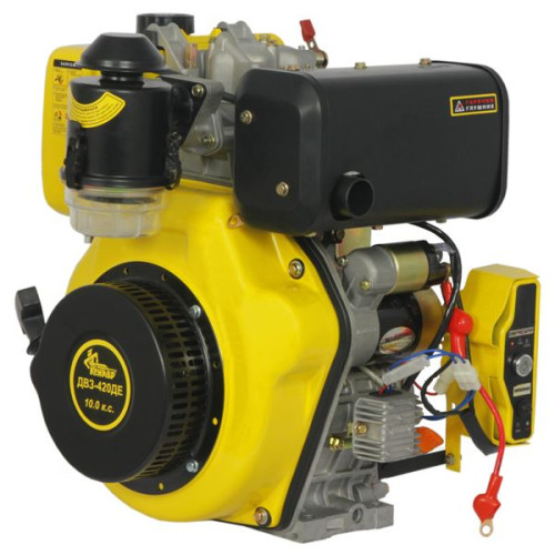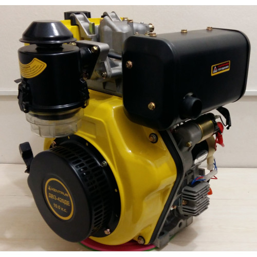Мощный дизельный двигатель Кентавр ДВЗ-420ДЕ. Этот мотор, является аналогом ДВЗ-420Д. Единственное отличие: на этом двигателе установлен электростартер. В остальном, это идентичные модели. Область применения этого мотора довольно широкая. Если обратить внимание, то можно увидеть этот агрегат на строительных площадках, где его устанавливают на такое оборудование как трамбовка. Двигатель на измельчитель веток Кентавр 10 л.с. как нельзя лучше подходит для этих целей. Но основное назначение этого силача – это двигатель воздушное охлаждение на минитрактор или на другую сельскохозяйственную технику. Благодаря незначительному весу, этот агрегат используют как дизельный лодочный мотор.