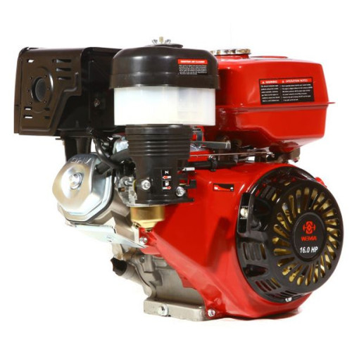 Двигатель Weima WM190F-L, представляет собой мотор с немалой мощностью 16 л.с. объем 420 см3. Система охлаждения воздушная принудительная. Данная модель, оснащена понижающим редуктором, который понижает обороты с привычных 3600 об/мин до 1800 об/мин. Тем самым, приобретает выносливость и тягу, дизеля.