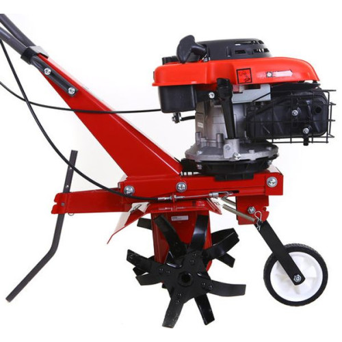 Культивация производится фрезами на ширину 40 см. Глубина проникновение фрезы, может быть отрегулирована, ограничителем глубины. Максимально фреза проникает в грунт на глубину 13 см. Данная модель способна выполнять прополку междурядий, окучивание и другие виды работ.