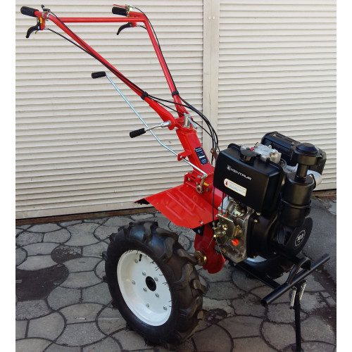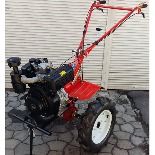 Большие колеса 4.00х12. Широко расставлены, что придоет усточивости машине при движение по неровной поверхности. Размер колес, отлично способствует работам с прицепом, но для работ с роторной косой, рекомендуется приобретать меньший диаметр 4.00х10, будет в самый раз. Пример – это модель WEIMA WM1100B,