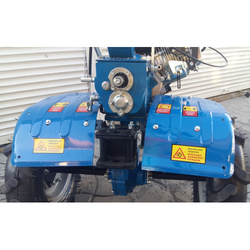 Привод остался идентичный с МБ2070Б/М2, полуоси диаметром 24мм. Как и ранее, одно из основных отличий старшего брата, мотоблока МБ 2070Б-4, у которого больший редуктор и диаметр осей колес, составляет 32 мм. В нашей сельхозмашине, более скромные габариты механизма. Но их вполне хватает для полноценной работы на плотным грунте. Редуктор выполнен из прочных шестеренок, которые создают достаточную тягу, несравнимую с ременной техникой.