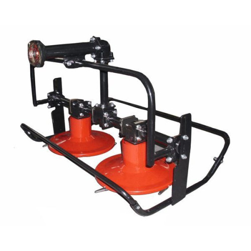 Коса на мотоблок Кентавр КР 02, выполнена из первоклассного метала, имеет надежный привод, который в свою очередь был закален для работы под большими нагрузками. Режущая система, в виде дисков, имеет подшипники, которые предназначены выдерживать длительные нагрузки на высоких оборотах. На дисках, имеются металлические ножи, которые слегка заострены. Дальше все делает центробежная сила. Обратите внимание при работе, диски вращаются внутрь, что позволяет вам, укладывать свежее скошенную траву, в аккуратные валки.