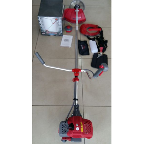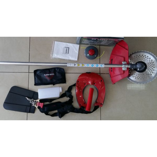 Прямая штанга, с алюминия имеет диаметр 28 мм, с цельнометаллическим валом, штанга и вал дают дополнительную жесткость при работе, а также частично гасят вибрацию. Редуктор, который выполнен из первоклассных материалов, все это в совокупности дает- длительный срок службы BK5223a. На прямой штанге находятся, ручки управления, велосипедного типа, которые легко регулируются под любого оператора, отличительной особенностью ручек управления, является то, что их можно регулировать не зависимо, друг от друга. Ранце образный ремень, очень удобно ложится на плечи и правильно располагает вес мотокосы ВК 5223а, на операторе. Антивибрационная система, максимально, глушит вибрацию двигателя, что дает возможность, работать с большим комфортом. Для безопасности при работе, производитель предусмотрел, прочный щиток, который обеспечит защиту оператора при попадание ножа на посторонние предметы. Также стоит отметить, на защитном кожухе, имеется специальное лезвие, которое своевременно, отсекает не нужную леску. Такая на первый взгляд мелочь, не позволит леске, разбить кожух, как это происходит в косах, где отсутствует такое лезвие.