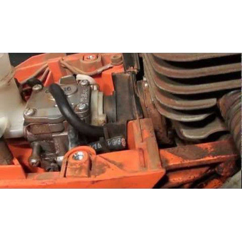 Двигатель бензопилы имеет мощность 4.9 кВт/6.5 л.с. Такая мощность получена благодаря использованию новейших технологий. Картер выполнен из сплава магния и алюминия, что позволяет работать данной бензопилой интенсивно на высоких оборотах. При этом можно быть уверенным в стабильной и долговечной работе данной бензопилы. Карбюратор защищен антивибрационной системой, что необходимо для работы на высоких оборотах.