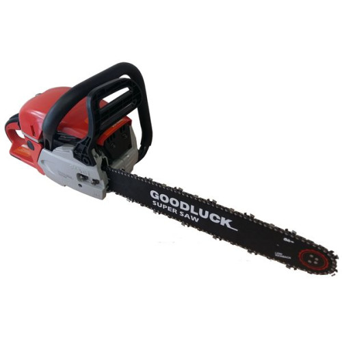 Бензопила Goodluk GLS-5200. 2-шт оригинальных шины и 2-шт цепи. Бочек размеченный для более точного смешивания топливной смеси. Лейка. Инструменты. Инструкция по эксплуатации. Гарантийный талон.