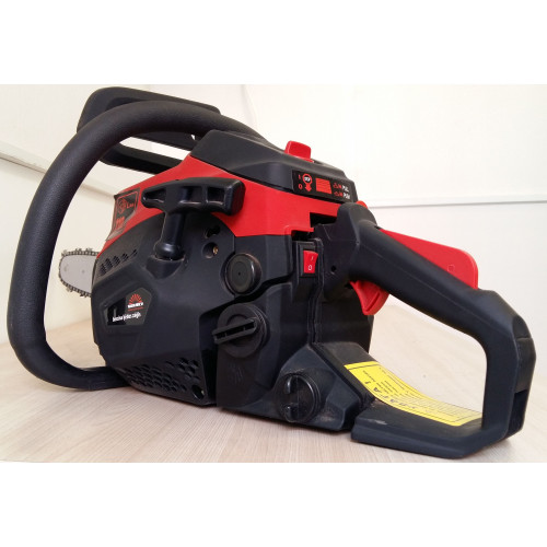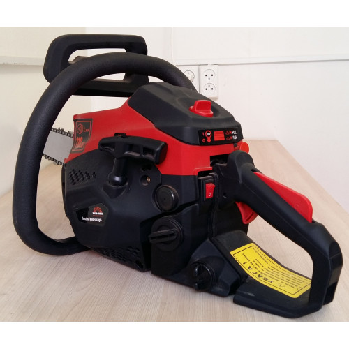 Для запуска бензопилы, в том числе при холодном двигателе, в зимние месяца, конструкцией предусмотрен, топливоподкачивающий ручной насос (праймер) Праймер, представляет собой, резиновую колбочку, которая находится возле, воздушной заслонки. Несколько нажатий, топливо поступает принудительно в карбюратор и можно производить запуск инструмента. Обратите внимание, бензопила профессиональной серии Виталс, оснащена плавным упрощенным запуском двигателя. Легкий запуск бензопилы, сравнительно недавно появившееся нововведение, но широко применяющееся, всеми ведущими компаниями, производящими бензопилы. Благодаря упрощенному запуску инструмента, вам нет надобности, рвать тросик стартера, его достаточно натянуть вверх и двигатель бензопилы, будет запущен. Краткий видео обзор бензопилы и ее запуск, можно посмотреть на нашем канале YouTube Обратите внимание, воздушная заслонка, становится на свое место, в автоматическом режиме, сразу после запуска бензопилы.