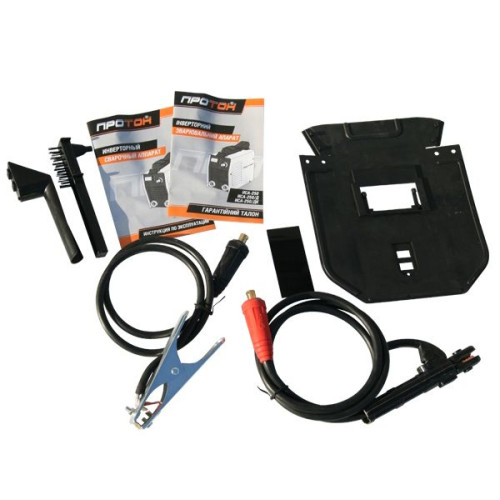 Комплектация Кабель с зажимом заземления; кабель с держателем электродов; молоток-щетка для снятия шлака