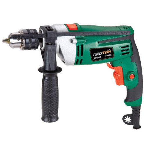Электрическая дрель ударная Протон ДЭУ-1100, превосходно себя зарекомендовала, в различных видах деятельности. Данная модель, может выполнять различные бытовые задачи и в тот же момент, вы сможете выполнять этим инструментом, профессиональные задачи, на любой строительной площадке, или в ремонтной мастерской.
