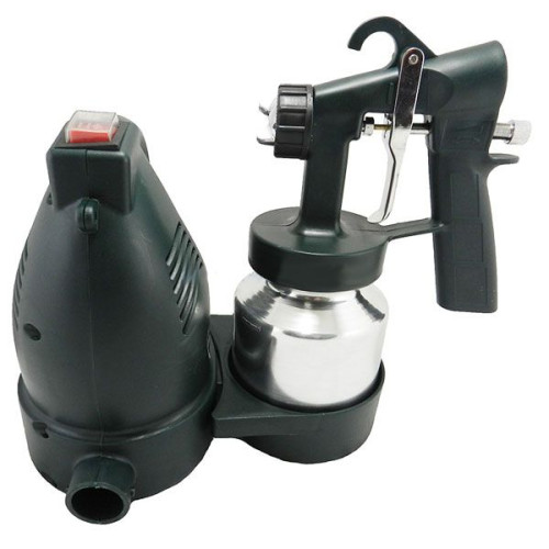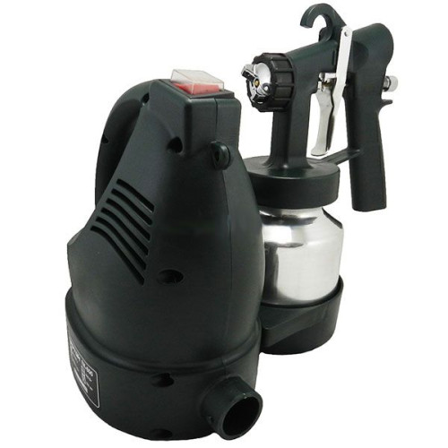 Покраска пульверизатором электрическим, не требует особых навыков, единственное следует придерживаться, некоторых рекомендаций, для более качественного выполнения работы. Обратите внимание в комплекте поставки, идет специальная воронка для определения вязкости краски. Вязкость распыляемой смеси, не должен превышать 80 DIN. Определившись с составом, рекомендуется, аккуратно залить краску в бачок, емкость которого 0.8 л. Старайтесь, не разливать краску, на резьбу, поскольку, краска застывшая на резьбе, превращается в клей, что приводит к затруднениям, при снятие бочка. Отрегулировав, распыляемый факел, можно приступать к покраски. Выберите оптимальную дистанцию, с которой вы сможете, максимально эффективно выполнять задачу. Производя окраску, к примеру стены, следует наносить краску плавными движениями, чтобы избежать потеков, а также недостаточного нанесения краски. При выполнение малярных работ, следует обращать внимание, на освещение. Плохое не равномерное освещение, может привести к не качественному нанесению краски.