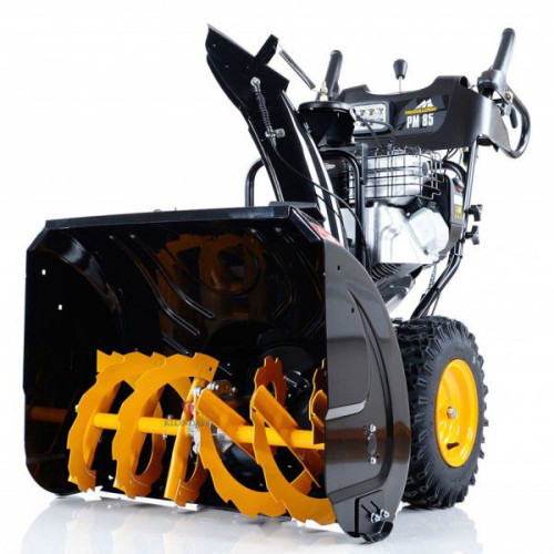 Снегоуборочная машина McCulloch PM 85, произведена в США и оснащена двигателем Briggs&Stratton Snow Series 1450, мощность этого двигателя, 7.4 кВт или 9.9 л.с. Рабочий объем двигателя, 305 см3. Мотор этого снегоуборочного агрегата, рассчитан для работы в суровых зимних условиях, когда на улице лютует сильный мороз, но даже при низкой температуре, двигатель превосходно заводится, с помощью ручного стартера, для простого запуска двигателя, предусмотрен электростартер, который работает, от электрической сети 220 В.