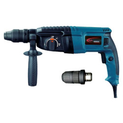 Пластиковый кейс,кулачковый патрон,3 бура 1 пика 1 зубило,боковая рукоятка,ограничитель глубины сверления