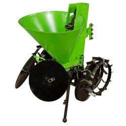 Оцинкованный бункер толщиной 0.8 мм с ребрами жесткости.Усиленный сошник.Привод цепной.Дисковый окучник регулируемый.