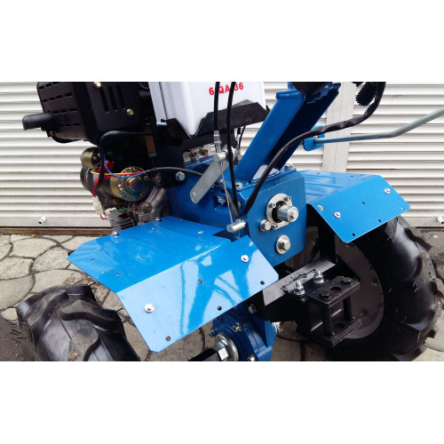 Как вы видите, был незначительно изменен руль, здесь более удобный хват. Ручки выжима сцепления, и обратного хода, выполнены из металла, что очень хорошо, поскольку пластмассовые ручки, довольно быстро выходят со строя. Легко регулируемое управление машиной. Отличная балансировка, вес распределяется таким образом, что оператор не ощущает особой нагрузки на руки в процессе работы.