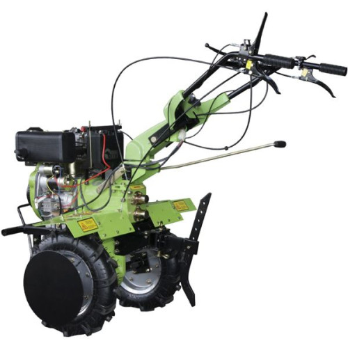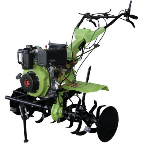 Дизельный мотоблок с электростартером Zirka GT76DE. Данная модель, может считаться аналогом мотоблока Кентавр МБ2081Д. Зирка 7.6 л.с - это в первую очередь, довольно мощная машина, оснащенная 4х-тактным двигателем, мощность которого 7.6 л.с. Система охлаждения воздушная принудительная. Воздушный фильтр, вибрационно- масляного типа. Болт, отвечающий за слив масла, выполнен с магнитным наконечником. Благодаря которому, металлические частицы,остаются на болте. Корпус редуктора, железо. Выхлопная труба, повышенной теплоотдачей. Имеются защитные крышки, на сальниках выходной оси редуктора.Благодаря специальным ручкам, на руле мотоблока, вы сможете мгновенно изменить высоту и угол руля, так как вам удобно. Возможность регулировки колеи колес. Два ВОМ, под шпонку и шлицевой, вал отбора мощности. Металлический бампер.