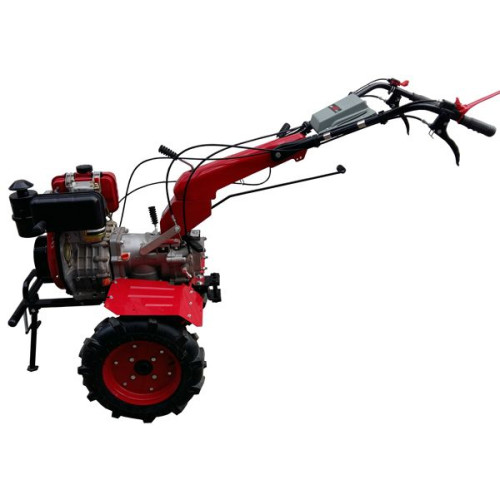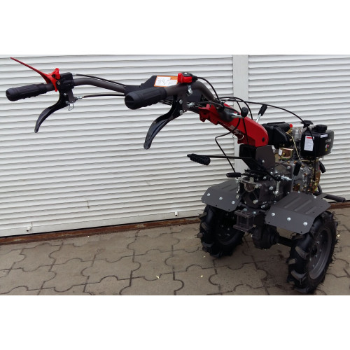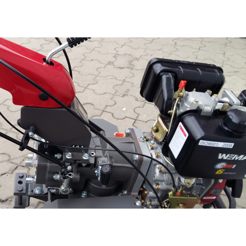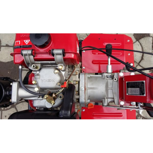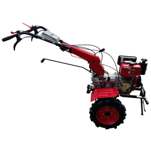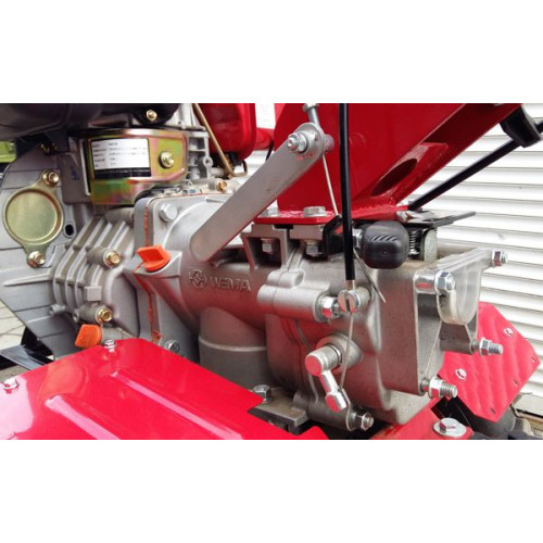 Мотоблок Weima WM1100AE6 KM Diff. Модель идет с блокировкой дифференциала, что существенно упрощает управление машинной. Оператор не прикладывая усилий, может развернуть мотоблок на одном месте, зажав одну из ручек блокирующих полуось. Мотоблок 6 л.с. имеет на своем вооружение полезную функцию – это Эл. Стартер. Запуск машины в зимнее время года, не создаст проблем. Именно в этой модели, усовершенствованные ручки управления, они легко регулируются по горизонтали и вертикали. С ними намного удобней работать роторной косой и активной фрезой. ВОМ, выполнен под шлицевое крепление и способен задействовать различное навесное оборудование, в том числе и роторную косилку травы.