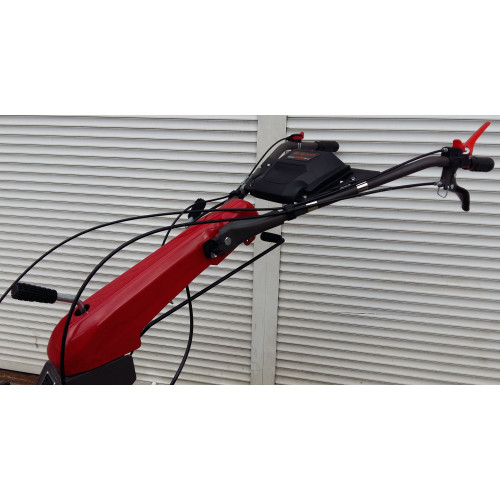 Колеса пневматические 4.00-10, фрезы,ограничитель глубины. Аккумулятор, крепеж под батарею, замок зажигания, провода. Набор инструментов. Подробная инструкция по эксплуатации. Гарантийный талон.
