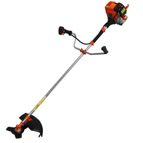 Цельная штанга, с цельно металлическим валом, в сочетание с превосходным редуктором который выполнен из качественных материалов, делают эту бензиновую косу, эффективным помощником в борьбе с сорняками. Данная мотокоса BK 4919o, может скашивать траву, так и не большие побеги деревьев, благодаря ножу который, идет в комплекте с косой. Диаметр кошения ножом составляет 255мм, а диаметр скашиваемого участка, леской составляет 430мм, диаметр самой лески 2.4мм. Защита которая оберегает оператора от посторонних предметов которые отлетают от режущей системы, имеет на краю нож, который контролирует длину лески, обрезая не желательно длинные куски. Удобный ремень, на котором коса будет, практически не ощутима для оператора, в сочетание с удобными ручками управления, которые можно отрегулировать, так как вам удобно, все это сделает работу, на много комфортней.