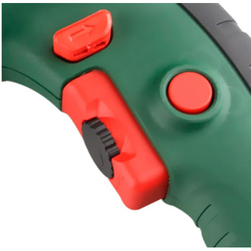 Электронная регулировка частоты вращения, на прямую зависит от силы нажатия, на клавишу ПУСК. Чем интенсивней нажатие, тем больше обороты двигателя и на оборот. Также имеется механическая настройка оборотов. Колесико предварительной регулировки оборотов, находится на кнопки ПУСК. Удобно расположена клавиша реверса. Реверс, ползункового типа - это довольно надежно, поскольку, можно быть уверенным, что переключатель реверса, не будет, случайно сломан.