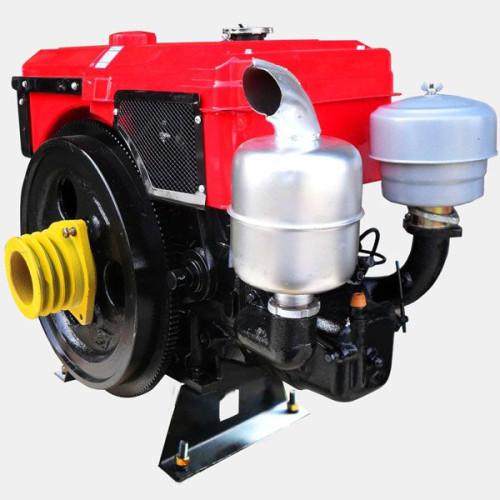 Дизельный двигатель 15л.с. Зубр 1100 водяного охлаждения. Здесь задействован радиатор с охлаждающей жидкостью. На соты, непрерывно направляется воздушный поток, благодаря работе вентилятора. Циркулирующая жидкость, стремительно отводит тепло от нагреваемых узлов агрегата. Преимущество такого класса охлаждения – это возможность действовать без вреда для себя, в условиях сильной жары за бортом.