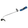 Разборная штанга,верх штанги покрыт резиной,верхнее расположение двигателя.Возможность использования, как лески,так и ножа,при выполнение кошения.